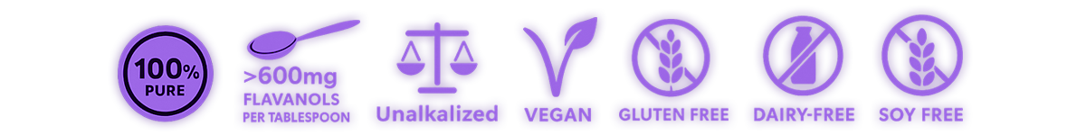 - Naturally rich in epicatechin, supporting nitric oxide production for clarity and energy